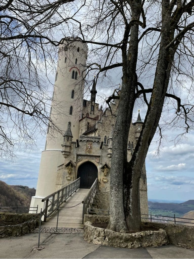 Wenn das Gute so nah ist, dann sollte man es nicht verpassen. Gerade auch im „fortgeschrittenen“ Alter, die anhaltende Neugierde auf Neues vorausgesetzt. Da gibt es einen Verein, der sich unserer Muttersprache verschrieben hat – und den wir schon des öfteren im Blog/Netztagebuch erwähnt und zitiert haben. So in den #86/88/92/98/99 und 106. Der Verein Deutsche Sprache (VDS) wurde im November 1997 in Dortmund gegründet und hat weltweit rund 36.800 Mitglieder, davon etwas mehr als die Hälfte außerhalb unserer Landesgrenzen. Innerhalb bedient sich die Einteilung in Regionen der ersten beiden Ziffern der Postleitzahlen (in einigen Fällen auch der ersten drei). Für die Region 72 – Reutlingen, Tübingen, Albstadt – wurde das jährliche Mitgliedertreffen nun in dieser Woche auf Schloss Lichtenstein abgehalten. Nur 40 km Autofahrt durch eine landschaftlich reizvolle Gegend. Ein Abstecher zudem in die Romantik Wilhelm Hauffs und in den württembergischen Adel. Den konnte ich mir als Schwabe nicht entgehen lassen. Das Ganze zudem auf Fels gebaut.