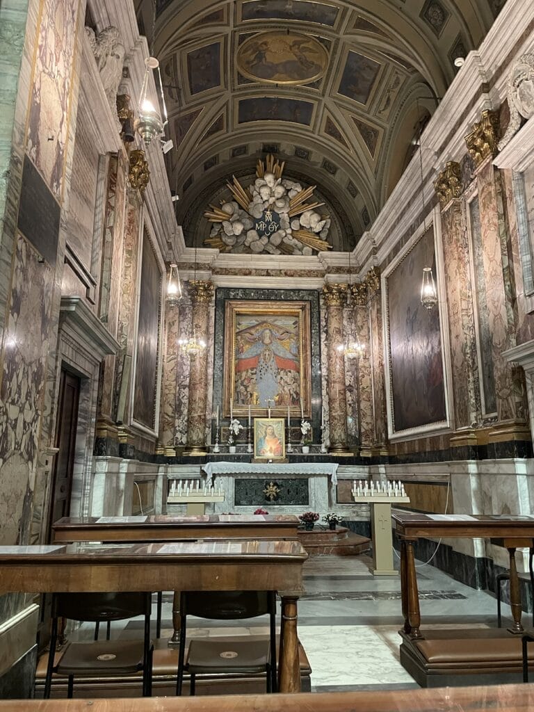 Von unserer Reise in die Marken ganz ohne App vier eindrückliche Bilder: die grandiose Grotte Frasassi, ein Beispiel aus Jesi für die vielen imposanten Kirchenaltäre, der einladende Platz vor der Basilika in Loreto und die weitläufige Gegend um Ostra.
