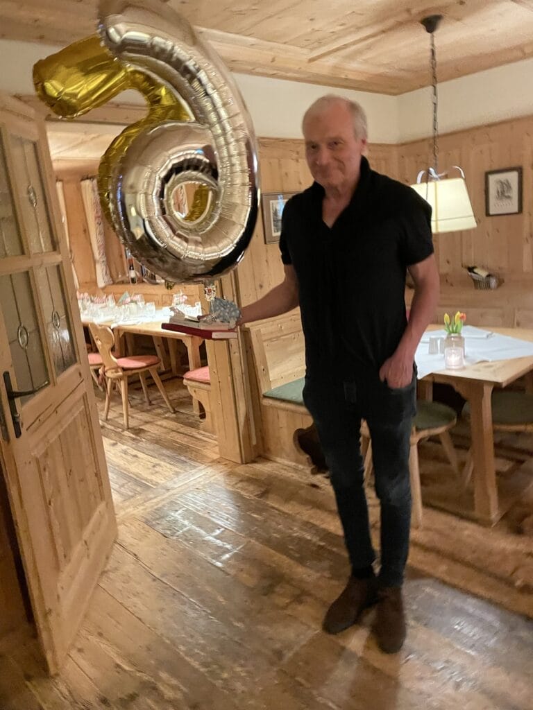 Im Bild Reinhard B., der in der Spitzfindigkeit #1 noch mit der Frage „100 oder 60“ versehen war. Hier kommt nach fünf Jahren endlich die Klarstellung: der junge Mann ist jetzt ganze 65 Lenze alt. Aus gegebenem Anlass hat er am letzten Montag sein Wiegenfest mit netten Menschen unterhaltsam und kurzweilig bei leckerem Wienerschnitzel mit Bratkartoffeln und Salat (das hatte ich auf dem Teller) im Gasthof Linde gefeiert.